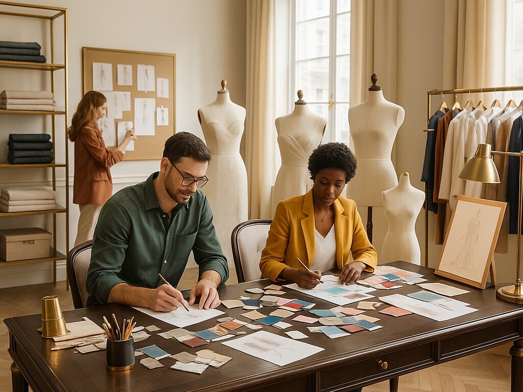 ファッションデザイナーの仕事は、一人で完結するものではありません。パタンナーや縫製スタッフ、素材メーカー、営業担当、さらにはモデルやカメラマンなど、多くの人が関わりながら作品を作り上げます。